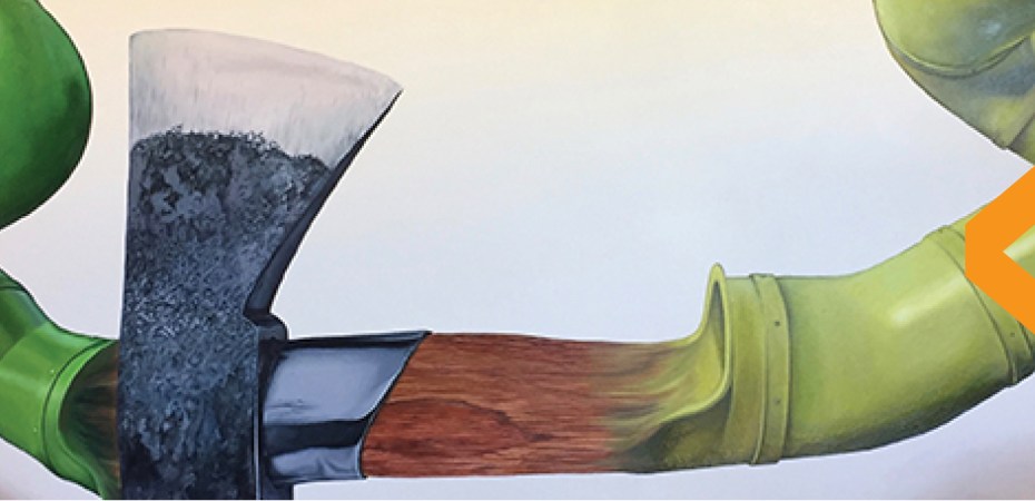 Para arribar a resultados convincentes, la jornada que cubre Ricardo es laboriosa. Ya explicamos cómo, en primer lugar, visualiza la idea temática. El próximo paso es construir artesanalmente una maqueta, que dotará de sustancia a lo que germinó en la experiencia introspectiva. Luego, prepara meticulosamente un set para fotografiar el artefacto o ensamblaje construido. Tras la sesión, elige la imagen que merece ser trasladada al lienzo y decide si aún tiene que intervenirla con recursos adicionales. Con el proyecto definitivo en mano, se dispone entonces al paso crucial: concretarlo a puro pincel en el plano bidimensional.