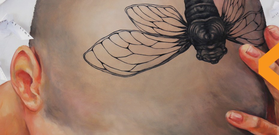 The work is conceptual, an example of a corporeal expression that is not limited to the physical movement of the body. Tattoos are also a form of ‘body language,’ a way to express creativity and beauty through the body, and are a common visual tool for Milena. Tattoos in her works are the visual conversion of scars, the things in the external world that leave marks on the flesh. She turns the human body into a canvas and all the stains and scars left by the world turn into symbols, into art. It is contradictory, that something painful can give rise to something so beautiful. The tattoo is something permanent while the Cicada, insects, wings, and birds are by nature fleeting and free. The juxtaposition is surrealist as Milena separates her work from the rational and instead, produces a kind of dream-like state. As paradoxical as it is, Milena still manages to harmonize these opposing elements; perhaps the figure wants to attain freedom or prolong the sensation it gives, a sensation every Cuban is probably intimately familiar with.