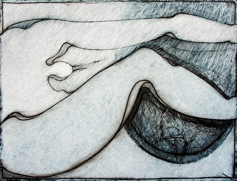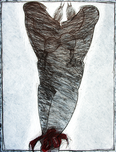 At this point, Rubén tends to capture and interpret us, the movements, vibrations and rhythms which shape his obsessions; this revival has made his textures want to offer, more and more, the illusion and sensation of skin—a basic and instinctive ingrediant in intercourse—his bill is such, that it elicites the viewer to touch, to caress the medium; paper and cloth with the qualities of velvet flesh.