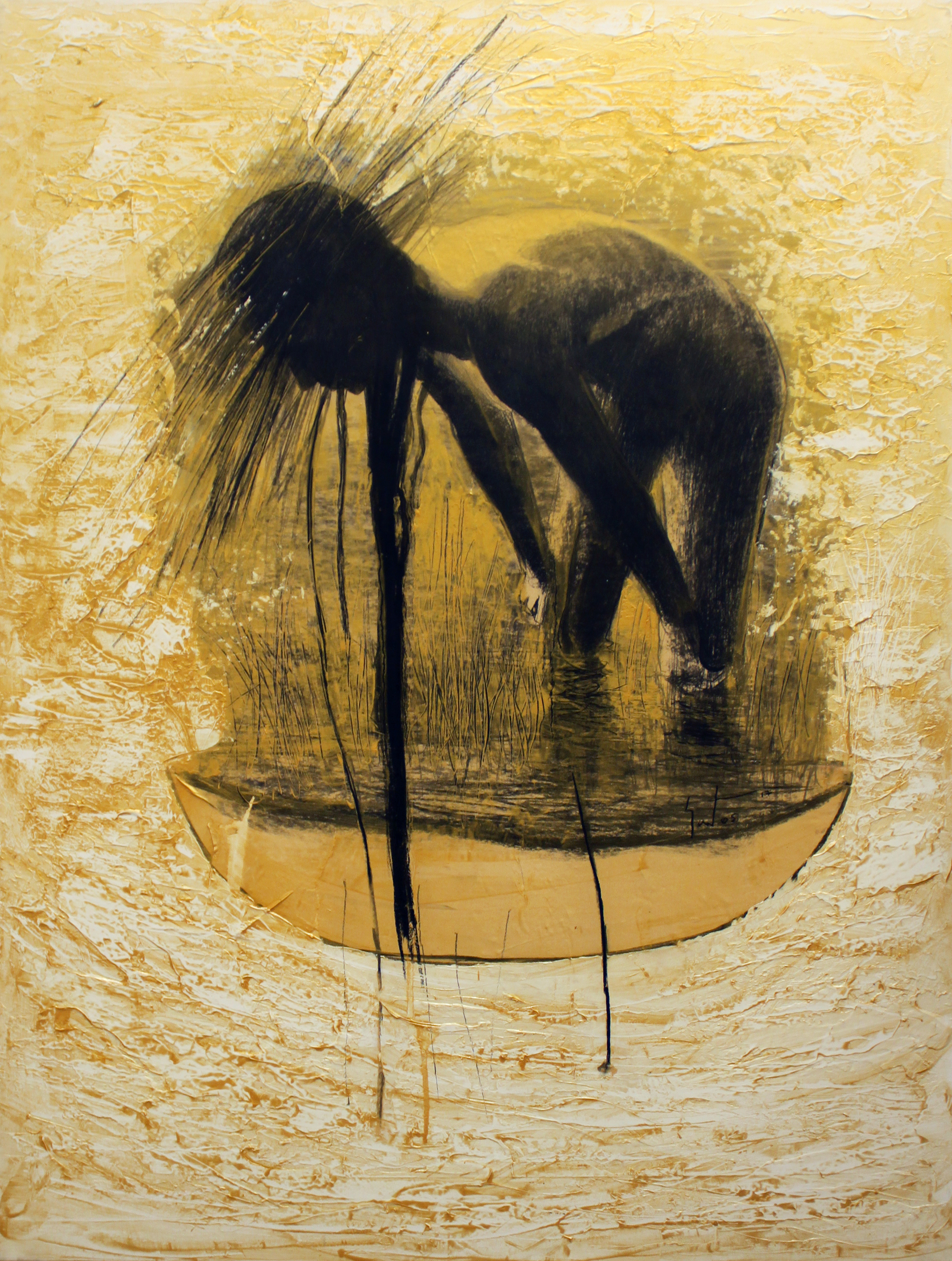 A veces me pregunto cuánto de autobiográfico habrá en las obras del artista, cuánto de su vida personal estará proyectado en sus telas y papeles. Y en esta dirección vienen a ser reveladoras las palabras del autor: “Representar todo tipo de emociones, a través de la historia de la Humanidad, es también una forma de canalizar mi vida emocional y espiritual, los recodos más íntimos de mi ser”. Con lo cual queda claro que la autorreferencialidad resulta crucial para el desciframiento de la clave de sentido de las obras de Santos, un artista todavía joven, pero con una poética madura, a la altura de las exigencias y el rigor del arte cubano actual.