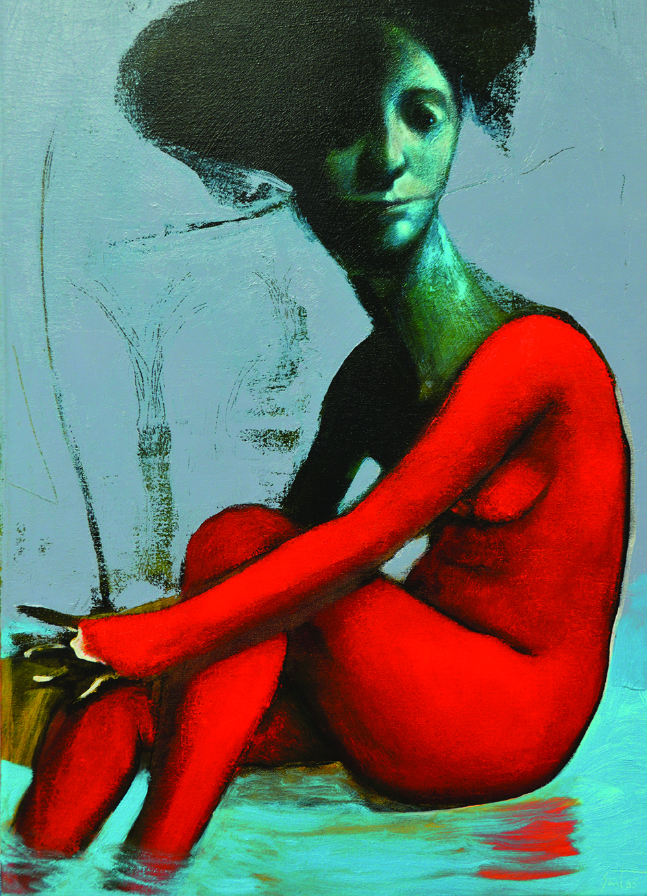 En otros personajes que se muestran con los ojos abiertos, estos se tornan recelosos, sobresaltados, por momentos como reclamando misericordia al espectador. La intensidad de las miradas habla muy bien de las habilidades del creador en lo que atañe al género retratístico. Eso sin contar las virtudes en materia de dibujo, tratamiento del color, dominio de las texturas como recurso expresivo, la destreza para la síntesis narrativa y la economía del lenguaje pictórico. Santos es un virtuoso de la técnica, del oficio. Y lo sabe, hace gala de ello. Lo cual no es malo, en lo absoluto. El arte de hoy demanda estocadas al pudor. La humildad y la inocencia suelen confundirse en un abismo común.