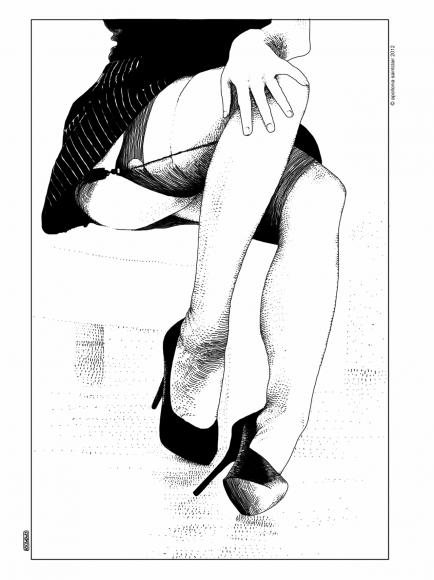 Apollonia Saintclair es una artista del dibujo erótico que mantiene su identidad bajo secreto. No se conoce su edad, nacionalidad o sexo, pero el misterio nos mantiene cautivos con su colección de provocadores dibujos publicados en la red. En 2012 Apollonia publicó sus dibujos en Tumblr, recibiendo una respuesta positiva y masiva en poco tiempo. Sus representaciones nos recuerdan el estilo de los maestros Milo Manara y Guido Crepax: dibujos en blanco y negro de trazos muy limpios y delicados al estilo de las mejores escenas eróticas del cómic europeo.