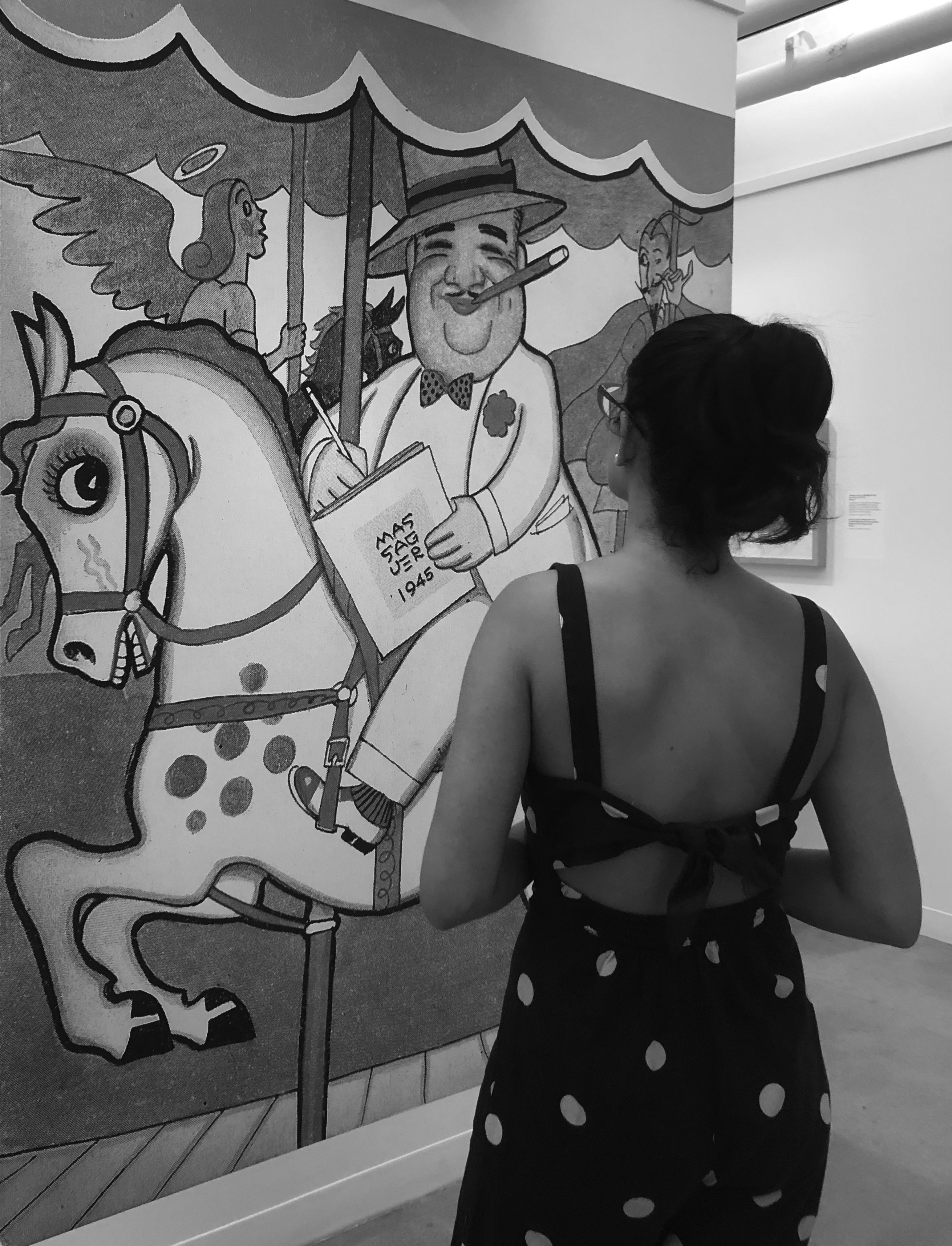Massaguer was not only a social observer but also a political critic. Characters from the Cuban-American scene met in his magazines (Social, Carteles – of which he was the founder and illustrator). At the same time, typical subjects such as Liborito, a representation of the Cuban people, discussed and shared space alongside the most recognized names of culture and politics, like Walt Disney, Adolf Hitler, and Albert Einstein. The opening of this exhibition gives us the opportunity to dialogue with presidents, artists, countrymen and even with the self-portrait of Massaguer himself. His work, on the walls of the Wolfsonian, ceases to judge to be received, ceases to be gestures to become words, to be read, to be interpreted even by the new generations who are also able to recognize in them their history. Caricature, when it is good, is never silenced.