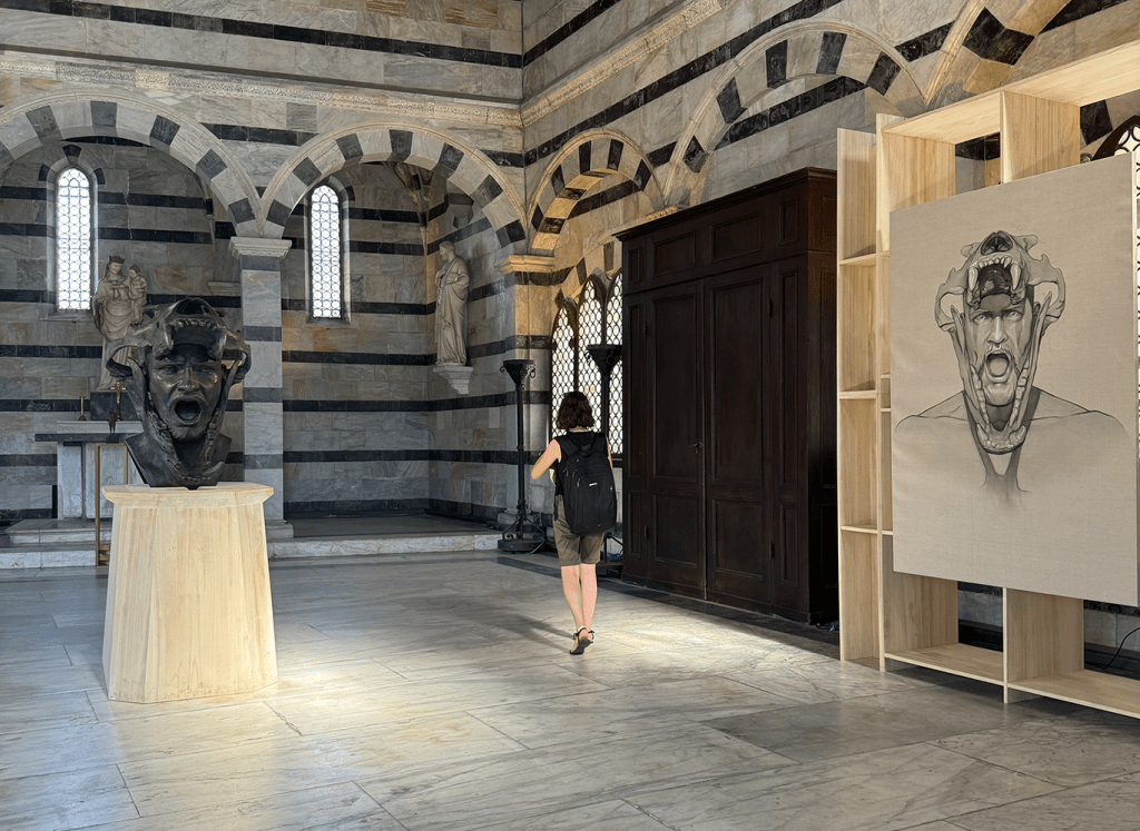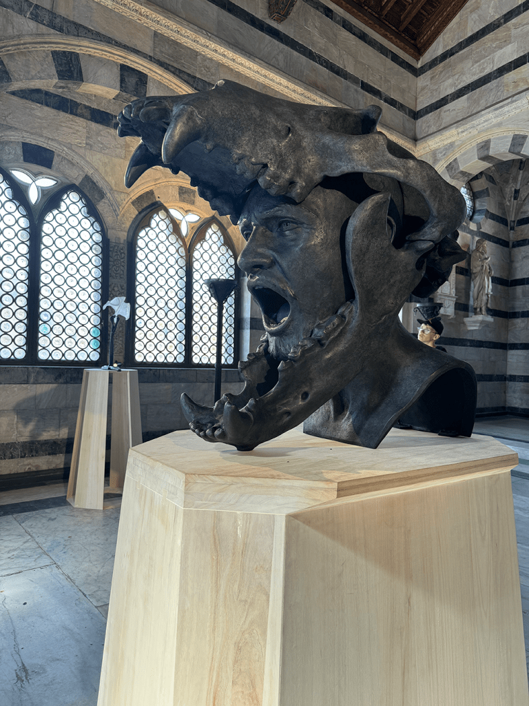 The sculptures are strategically placed to create a path through Pisa that mirrors a journey through time. Starting at the Piazza dei Miracoli, a site steeped in medieval history, and ending at the Fortilizio with the Torre Guelfa, a symbol of Pisa’s military past, the exhibition invites viewers to engage with the city itself as a living museum. Each location not only enhances the impact of the sculptures but also reinforces the exhibition’s exploration of history, memory, and identity.