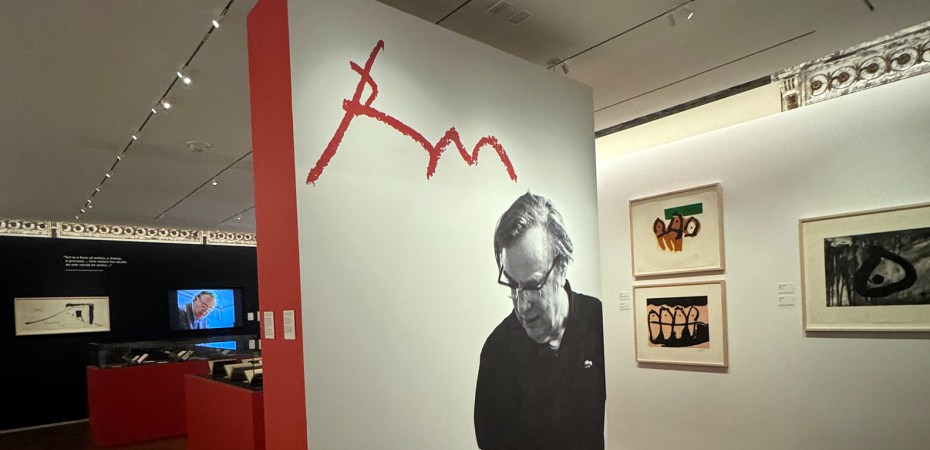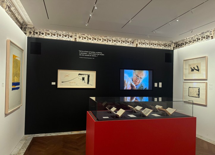 We’re not just shown his prints—though they are here in their brilliant emotional gravity, aquatints and screenprints pulsing with the hum of subconscious language. We’re given something even rarer: his books, his annotations, his marginalia. His thoughts-in-process. You get the sense that the brush never really left his hand, even while reading Poe or Mallarmé. That his pen was always ready to turn a sentence into a gesture, a paragraph into a shape.