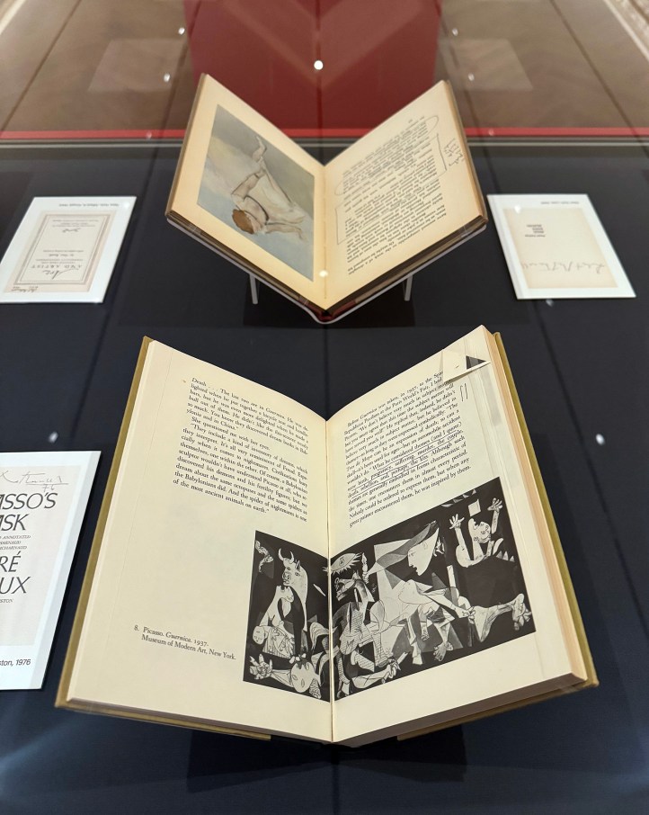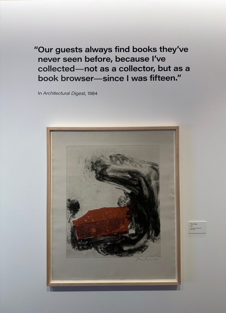 And so here we are, in the library, looking at an artist’s library. We are guests in his intellect, seated in a chair of imagination and critical inquiry. We are inside the room where literature and art made love and left behind something trembling.