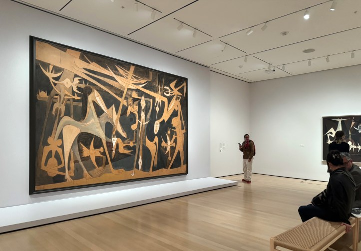 It’s Friday, November 7, 2025. Member Preview day for Wifredo Lam: When I Don’t Sleep, I Dream at MoMA. I arrived very early, and without thinking I walked straight up the stairs to the third floor, where I was immediately greeted by an old friend: Lam. The Jungle. Wifredo Lam’s iconic 1943 painting first appeared at MoMA on June 20, 1945, barely two years after it was created.